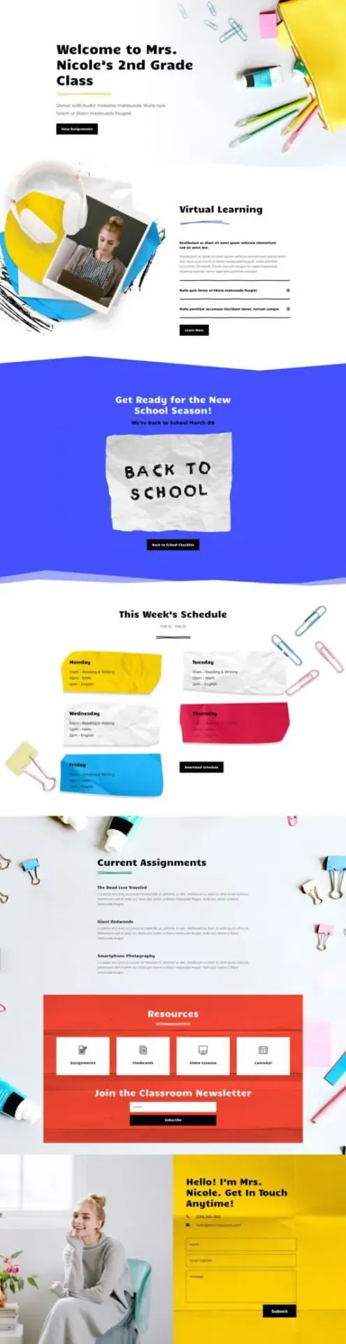 The key features for this layout pack include a dedicated resources page for showcases student and parent resources in style and an assignment page for displaying valuable info to students with clarity. The design elements for this pack include paper-textured backgrounds, cool animations, and other versatile graphics that can be used by all.