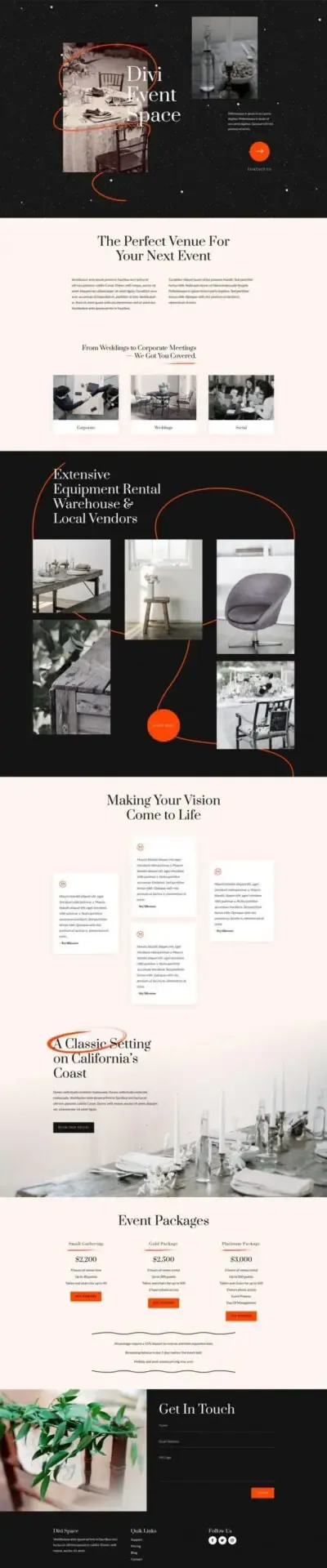 If you’re looking for an elegant layout pack to set up your next website, you need to check out the Event Venue Layout Pack for Divi. This layout pack has beautiful custom images, illustrations and effects to it. Not only can you set up a beautiful event venue website with it, but you can also use it to create any other type of website!