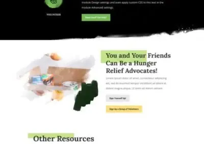 Without a doubt, the most striking design feature of this layout pack is the clever use of image masking. This provides a unique textured frame around background images that give it a completely unique look and feel. Plus the combination of broken background colors and differing font weights are a subtle but effective design element for titles and heading throughout. Some key pages include a donation page and a get involved page as well.