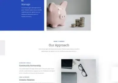 The Investment Company Layout Pack is professionally crafted to promote financial services, resources, and portfolios. It even has a dedicated page to inform visitors of your business process. Plus, all the custom icons and images are free for your to use as well.