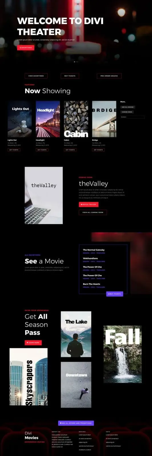 The Movie Theatre layout pack definitely sets the mood for an exciting trip to the movies (I can already smell the popcorn). The dark layout is perfect for showcasing movies with elegance. And the pack includes more than enough page layouts to get a movie theatre site running, including a movie calendar page and a membership page.