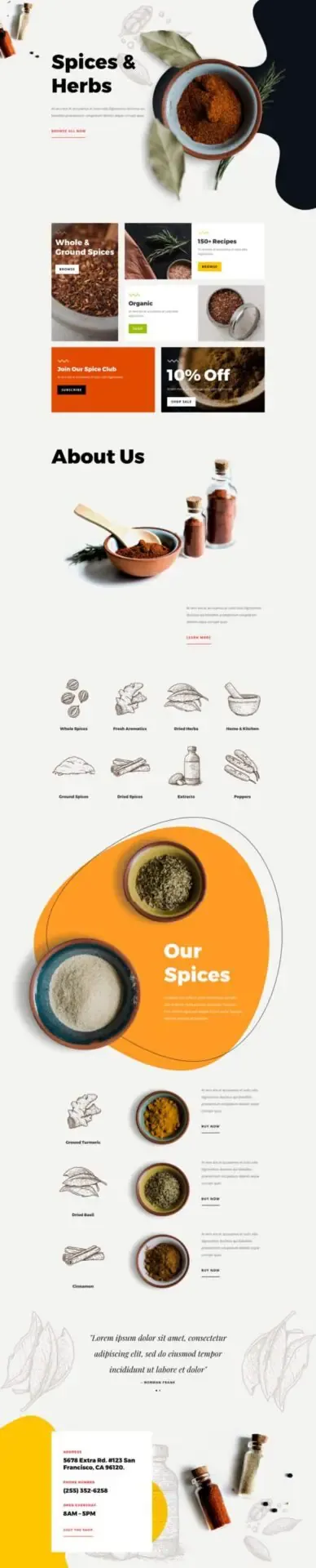 The Spice Shop layout pack is a bursting with powerful imagery and clean layouts, perfect for promoting those spices! The pack includes many versatile layouts including a dedicated shop page to make it easy to set up your store, and a recipe page for featuring recipes on your blog. Check it out today!