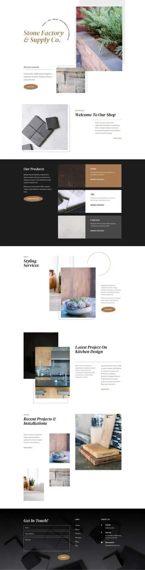 If you’re looking to set up a website for a stone factory, you’ll want to check out the Stone Factory Layout Pack for Divi. This versatile layout pack includes beautiful page structures that you can easily tweak to match any type of business website you want to set up! A neutral color palette and elegant typography make this layout pack match modern-day web design perfectly!