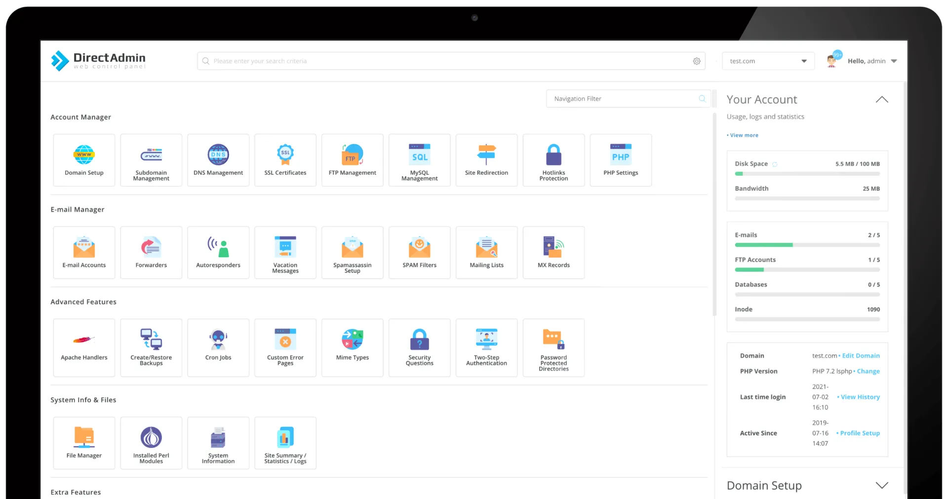 • Administrators can implement robust security measures like SSL certificates, firewalls, and regular data backups through DirectAdmin.