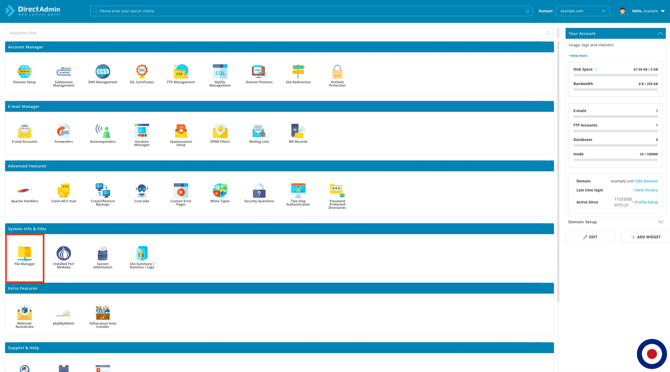 1. Login to your DirectAdmin control panel using your username and password.